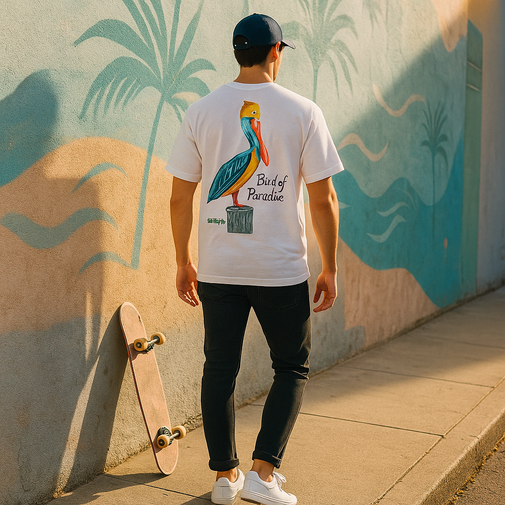 In collaboration with Gulf Coast artist Ryan D. Merrill, we’re proud to offer the Pelican “Bird of Paradise” T-Shirt — a vibrant tribute to the easygoing spirit of coastal living.